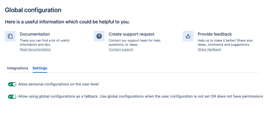 Allow personal configuration on the user level - allows users to configure Confluence Azure DevOps integration on the user level in the user settings section.