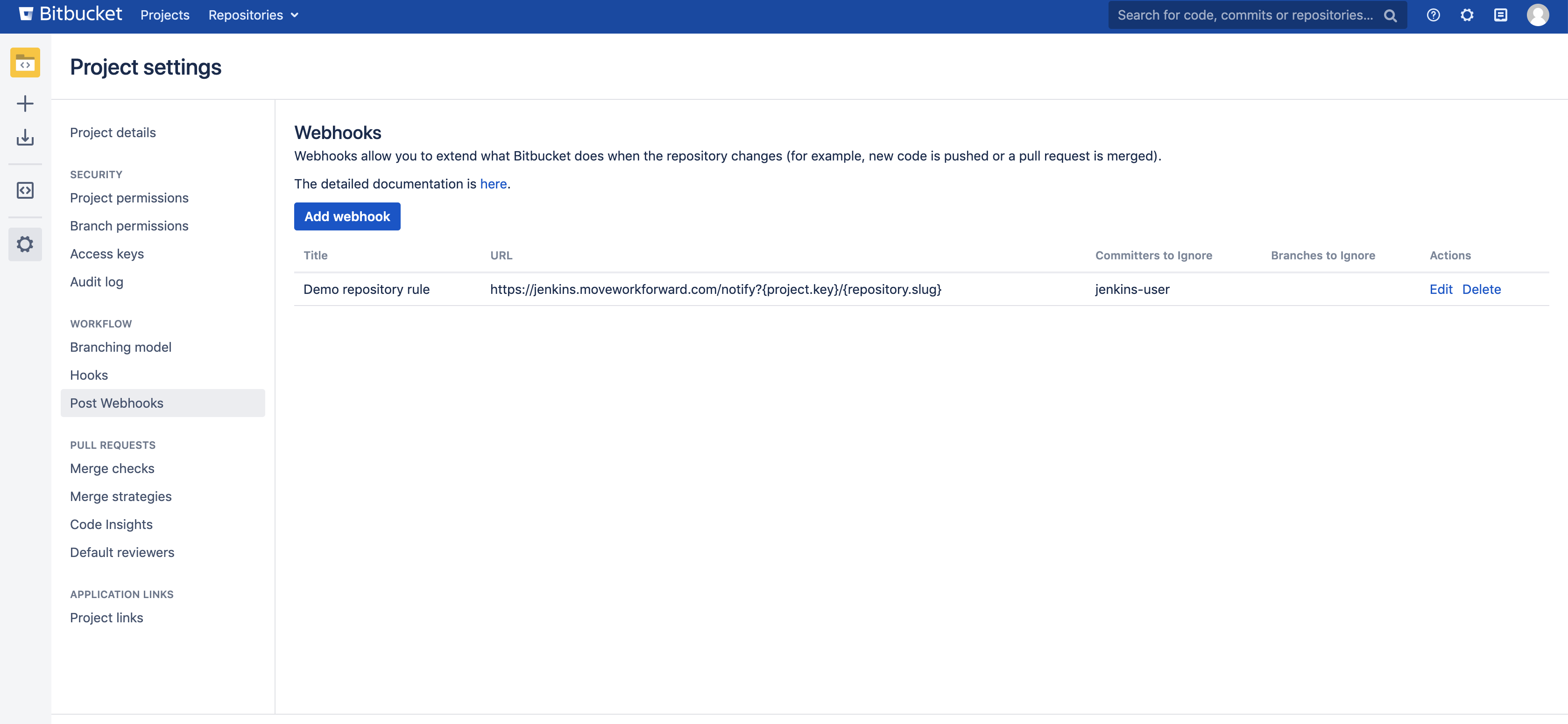 Bitbucket Post Webhook project level guide