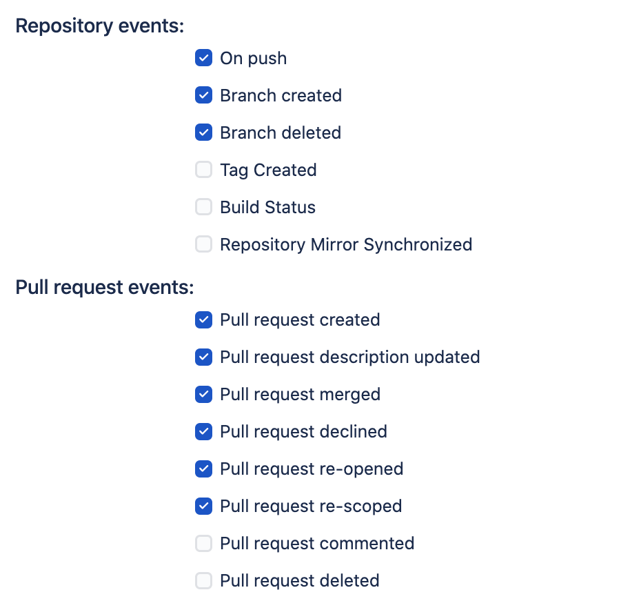 Include projects - a comma-separated list of Bitbucket project keys that will trigger this event.