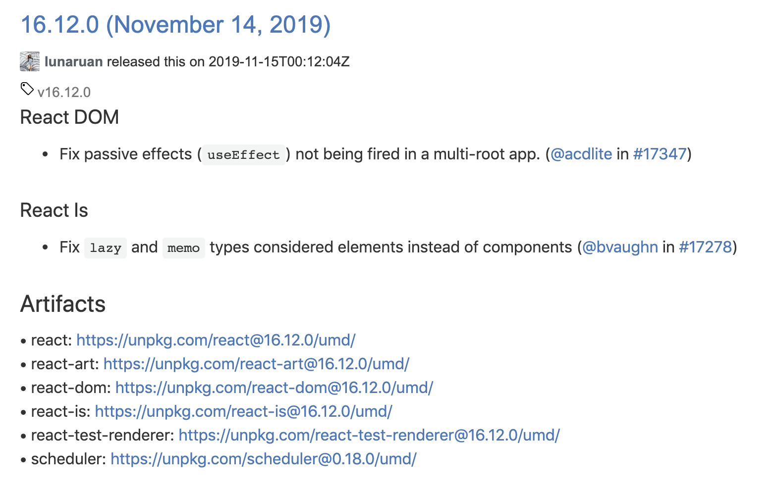 https://githab.com/facebook/react/releases/tag/v16.12.0