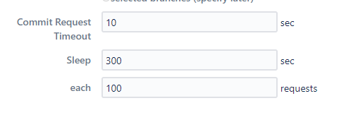 Commit Request Timeout- tells for how long the connection should be open to calling the GitHub/GitLab API before it times out. Default and recommended - 10 seconds.Sleep- the time Jigit will sleep between request batches (controlled by parameter each X request). The default and recommended value is 10.Each X requests- is the number of requests in each request branch before the sleep. The default and recommended value is 10.