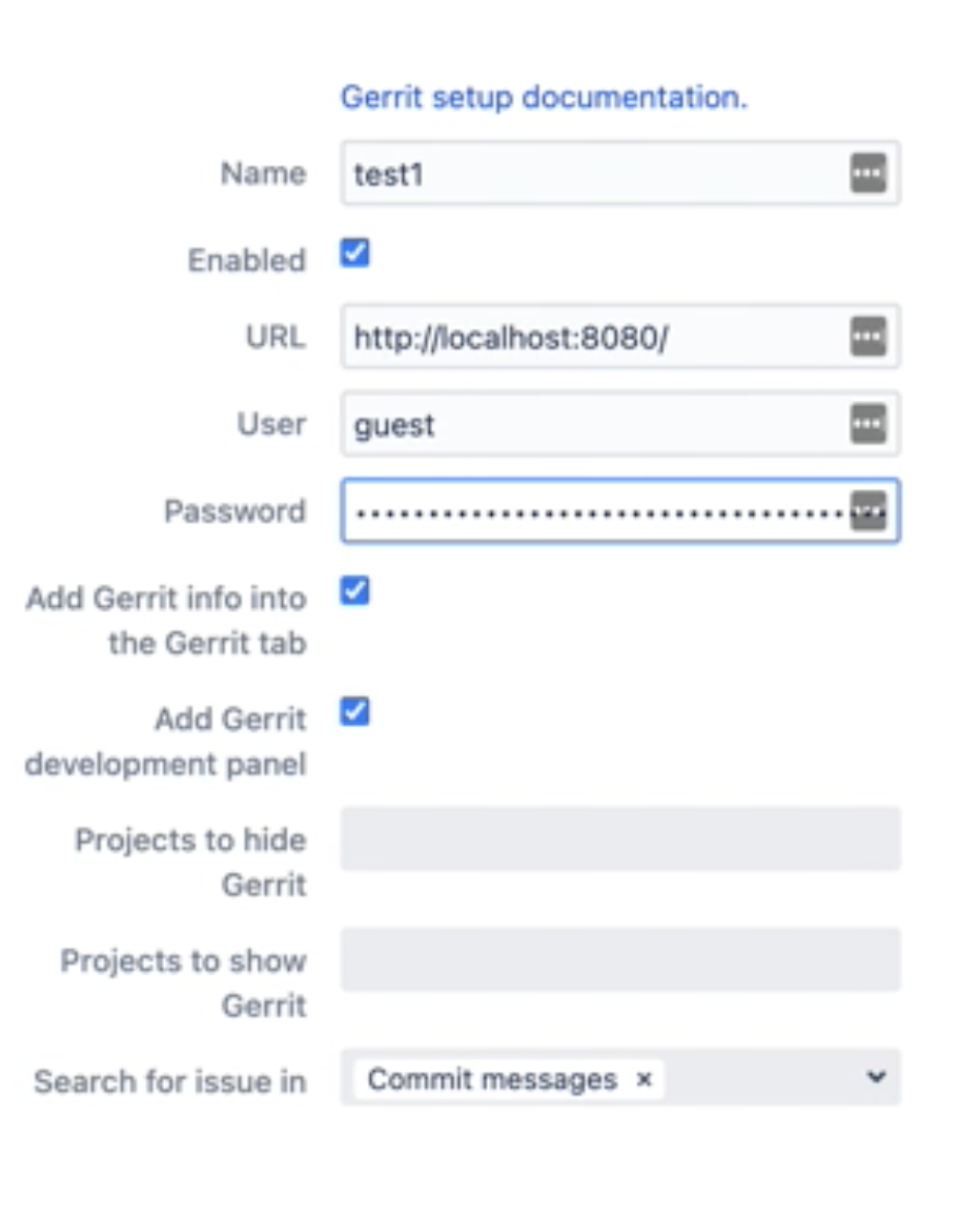 Projects to show Gerritsetting).Projects to show Gerrit - the list of Jira projects where to show Gerrit information.