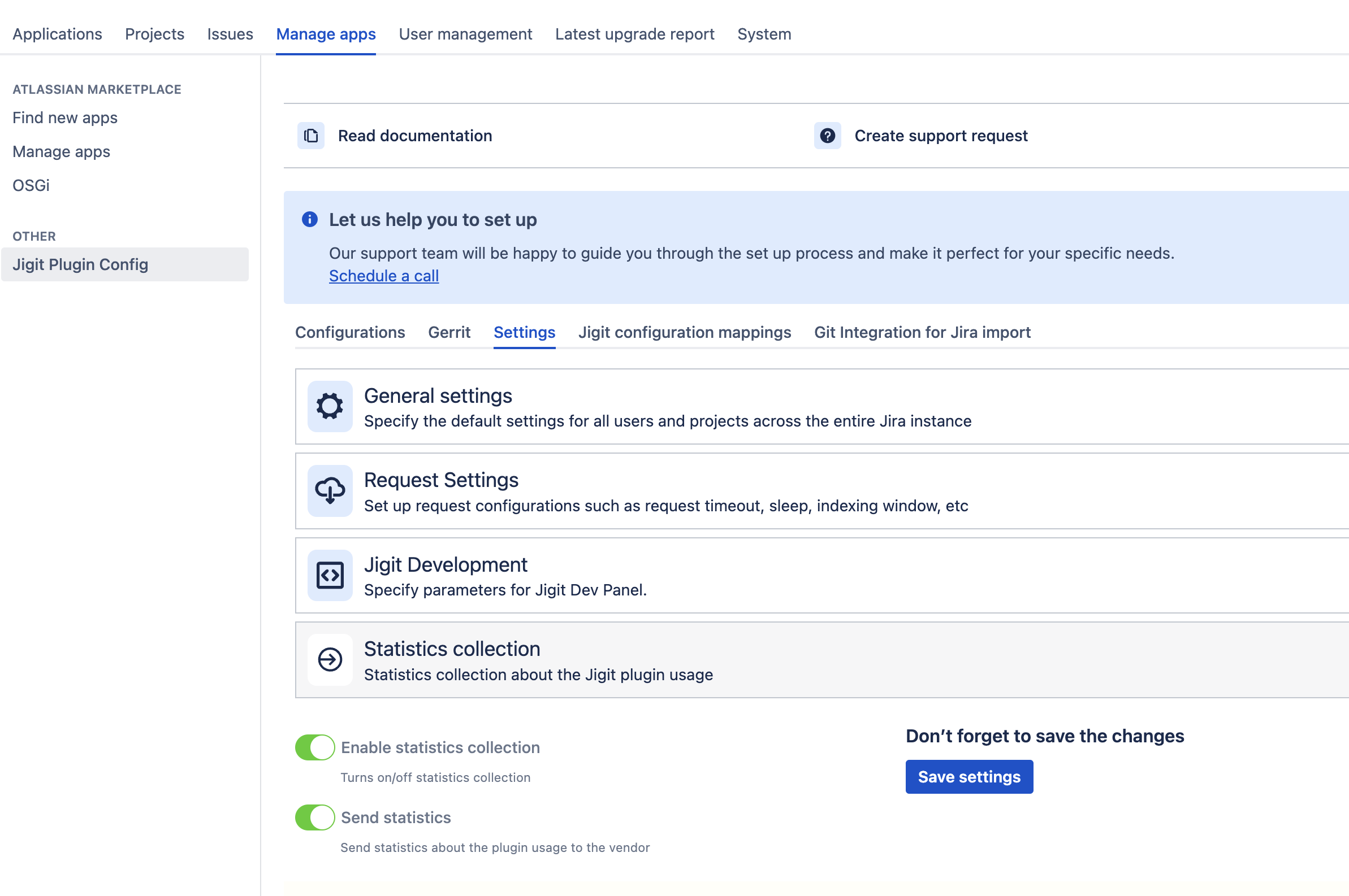 Navigate to the Manage app page and find our application Jigit Plugin Config on the left sidebar.