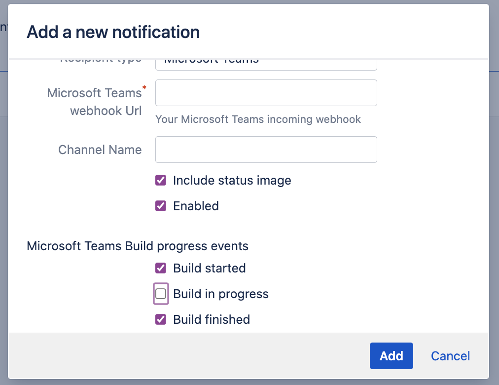 Microsoft Teams Connector for Bamboo Bamboo configuration