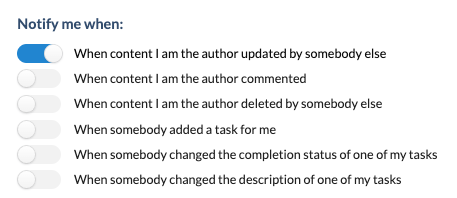Personal configuration allows a person to get personally notified about authored content and inline tasks