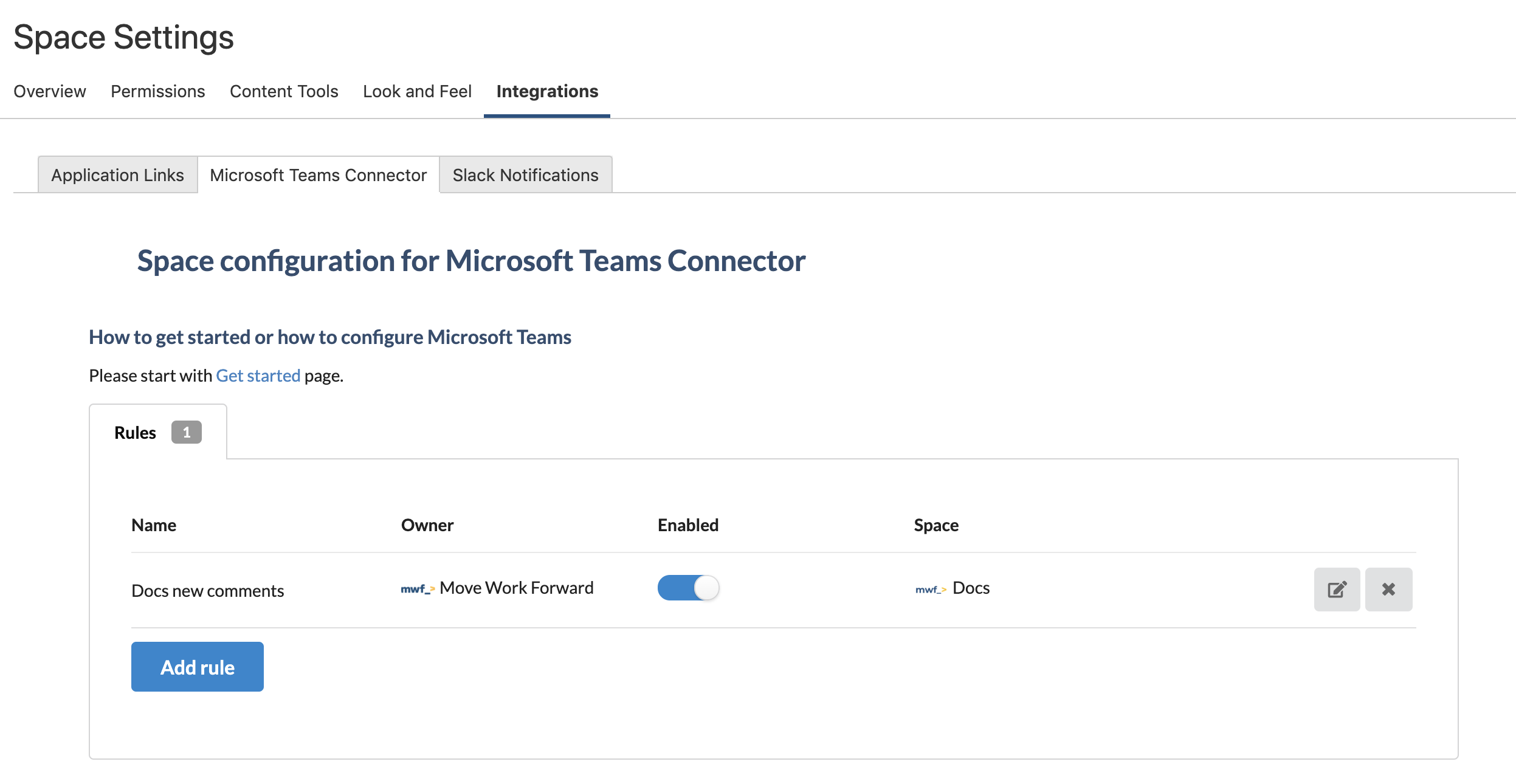Important: Microsoft Teams Confluence Connector Confluence app must have been installed before the connection process.