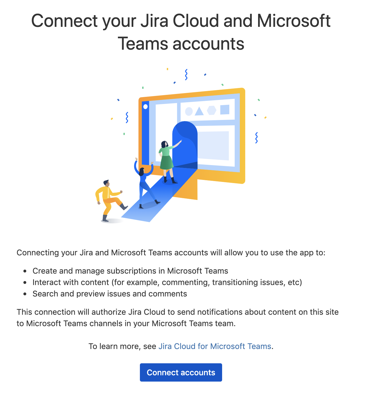 tenant mapping). Where you will say your Microsoft tenant is linked to your Atlassian Jira tenant. Usingconnect jiracommand in Microsoft Teams.When the tenants are mapped, any Microsoft Teams user can map his or her account to the corresponding Atlassian Jira account. This is done using