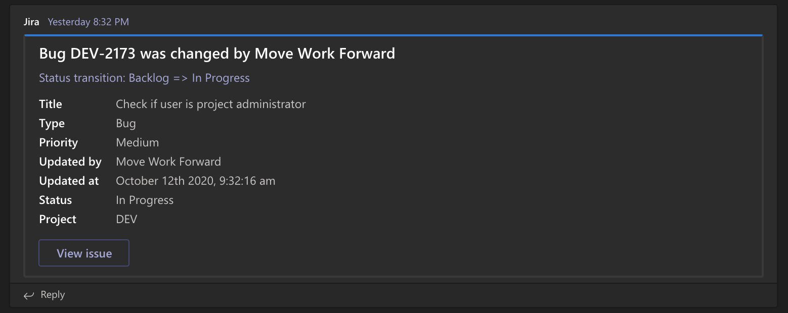 There are a few use cases presented below, but here are many more ways to use Microsoft Teams Jira Connector: