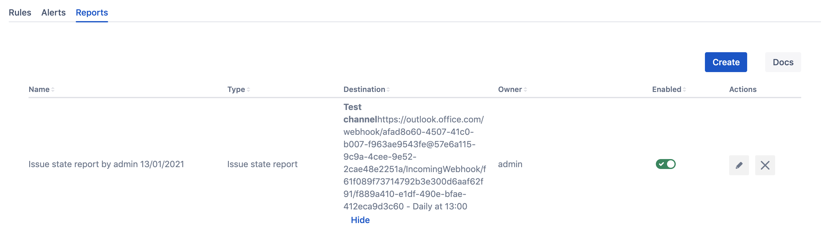 When the report is saved you can see when and where it gets delivered by clicking Show in the destination columns.