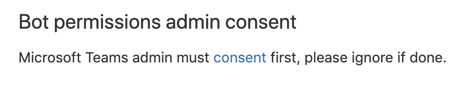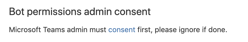 Microsoft Teams administrator needs to consent permissions for Advanced Microsoft Teams Connector for Jira to allow it to perform the operations it needs to perform. This link can be used to consent. The same link is available on the Jira System settings page.