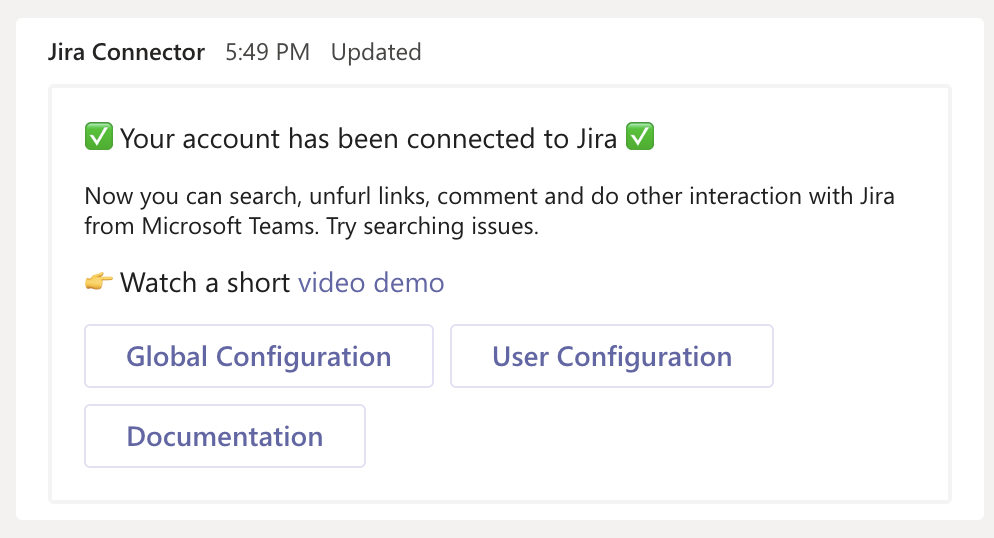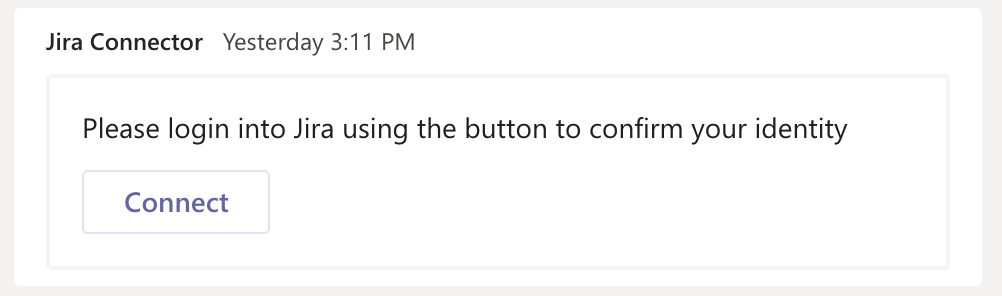 tenant mapping). Where you will say your Microsoft tenant is linked to your Atlassian Jira tenant. Usingconnect jiracommand in Microsoft Teams.When the tenants are mapped, any Microsoft Teams user can map his or her account to the corresponding Atlassian Jira account. This is done using