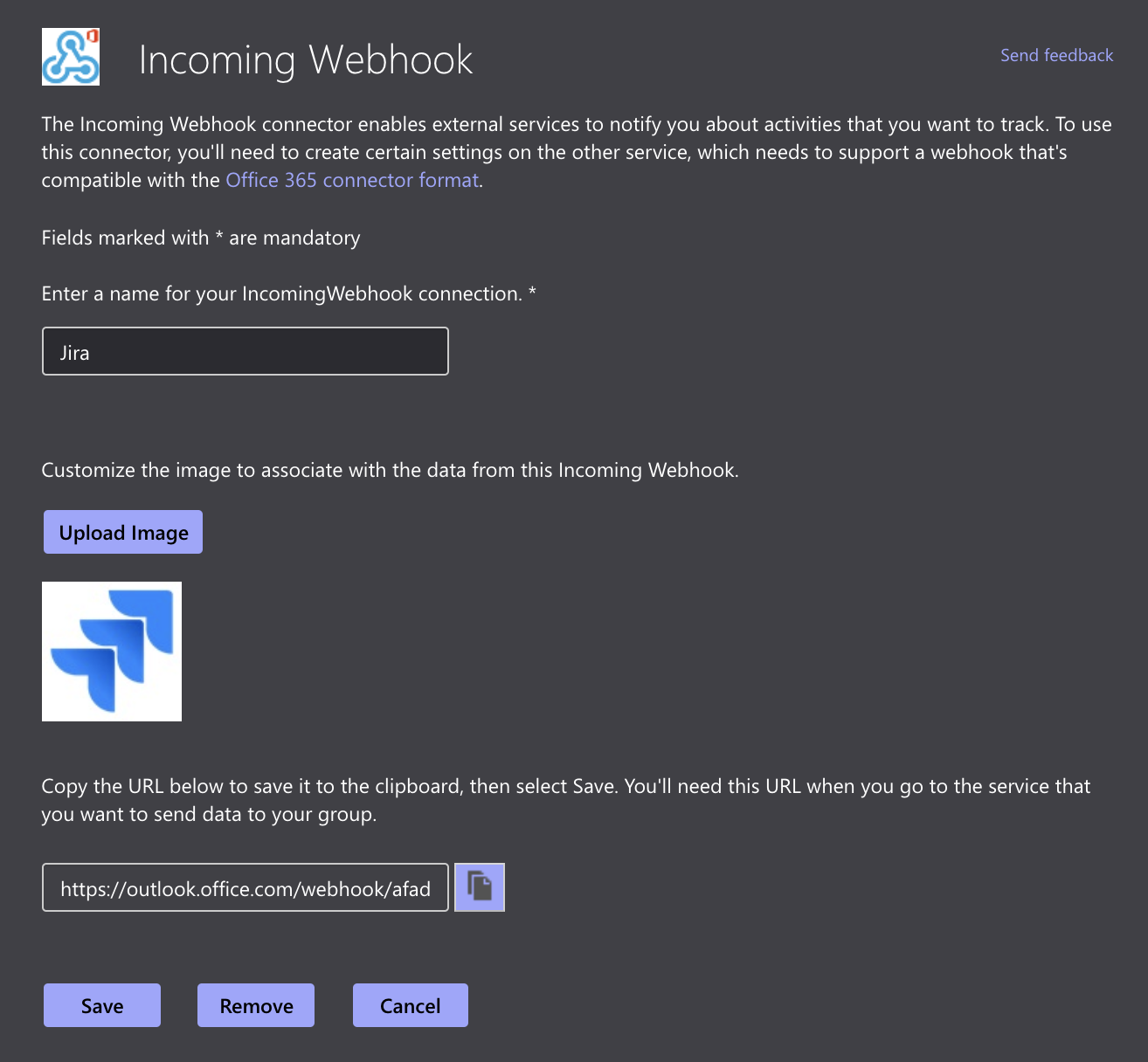 Copy the webhook URL that will be used later on during the configuration process.