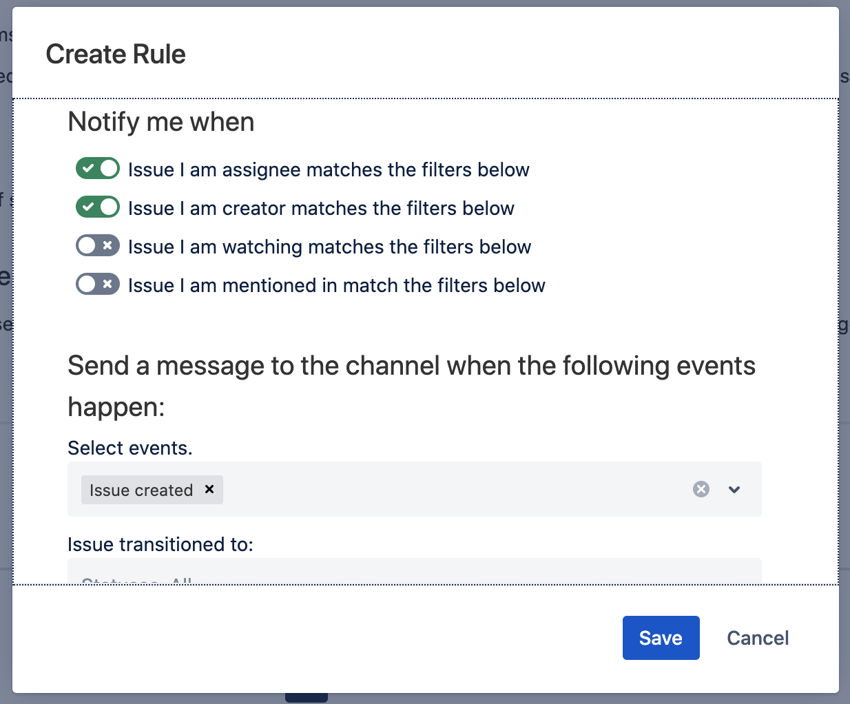 The personal rule can notify you in Microsoft Teams when the issue and the event match filters specified in one of the rules.