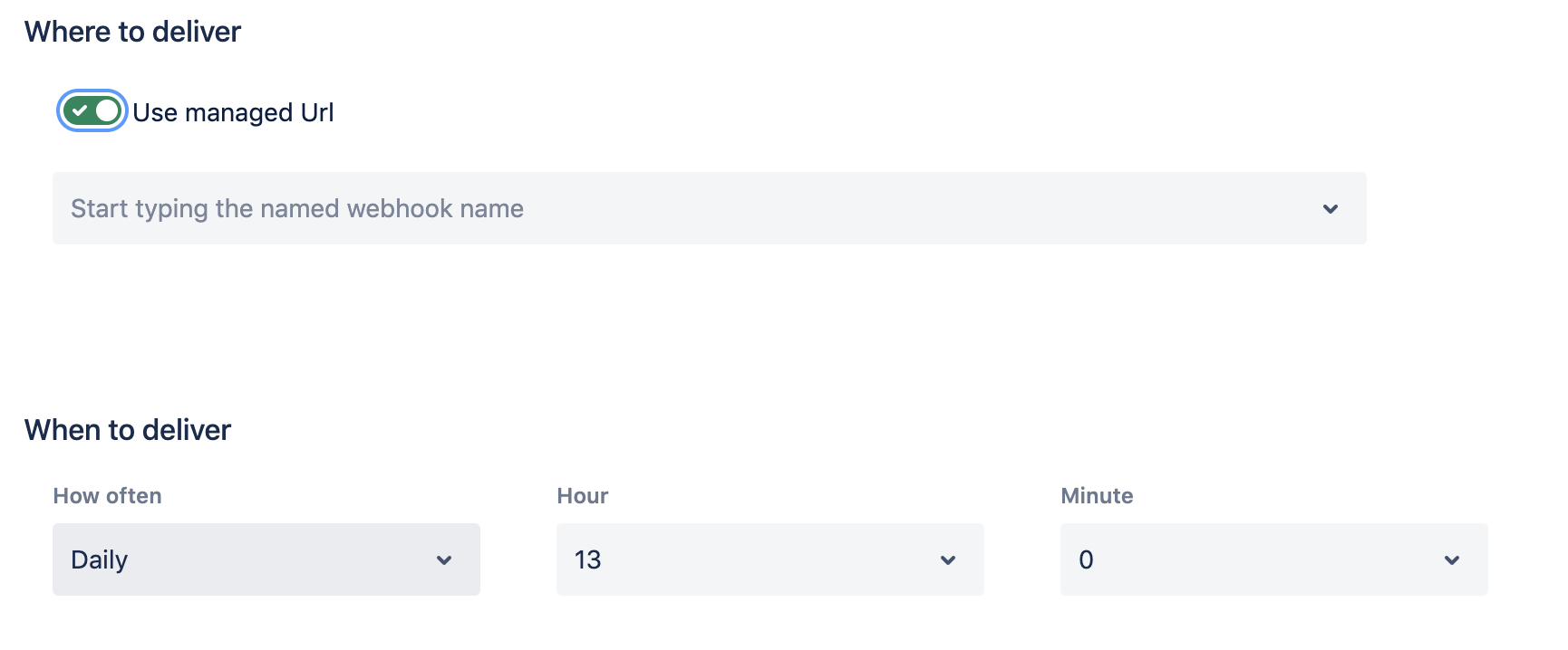 Select where and when the report should be delivered.