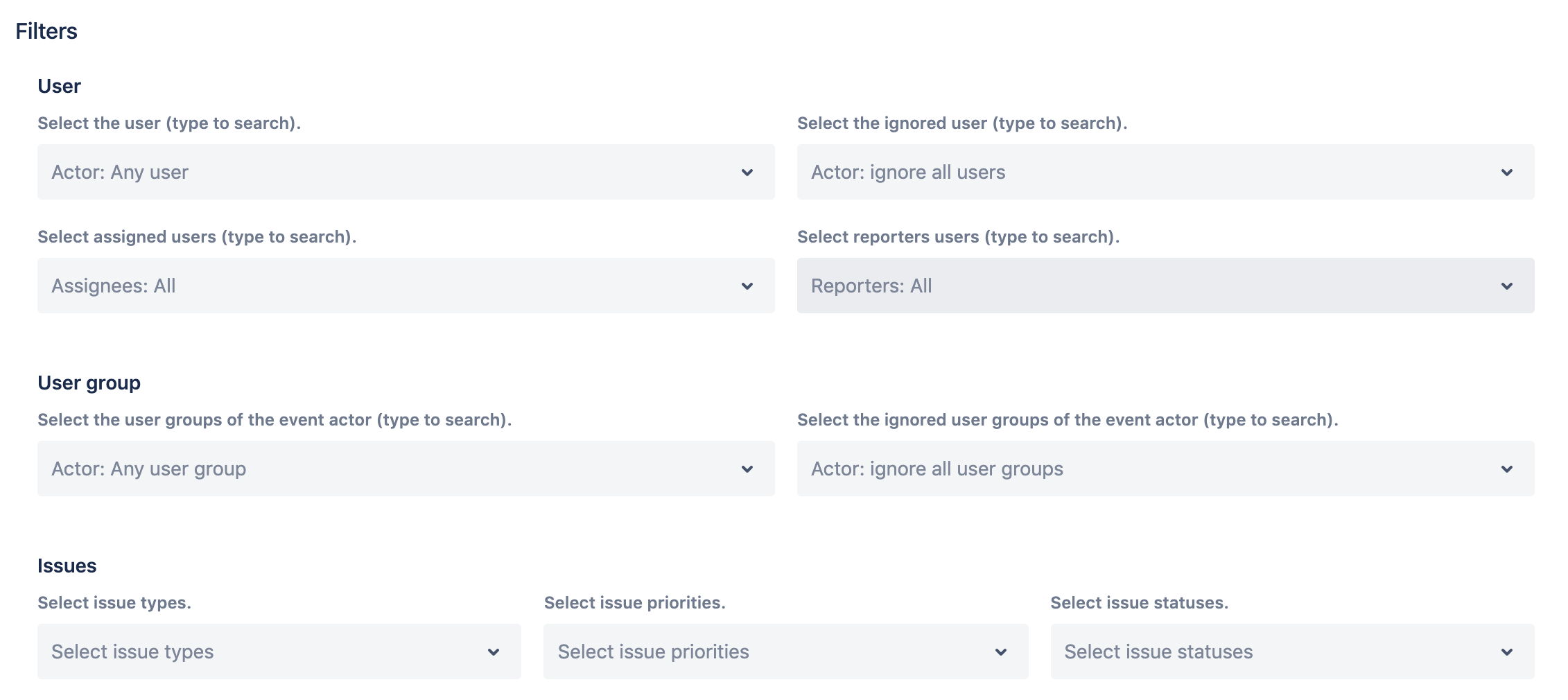 Scheduled reports help you and your team move work forward by delivering important information on the schedule. For instance, you want to know issues in a particular status delivered each morning, or you want to see the sprint or project progress; there are multiple time reports supported as well.