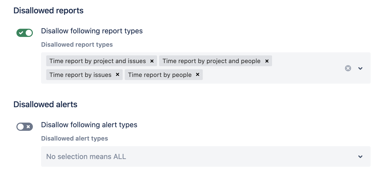 Jira system administrators can disallow reports or alerts in the settings.