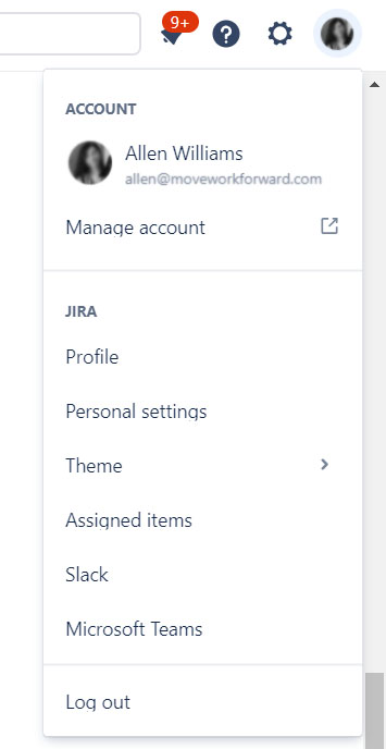 Click your user avatar in Jira.