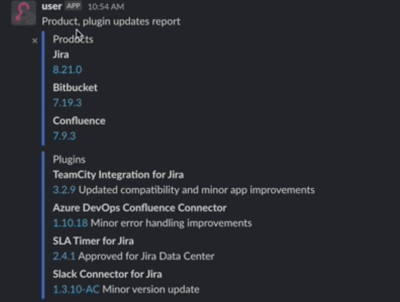 Global administrators can receive Slack notifications for new releases of major Atlassian products and Atlassian Marketplace applications.