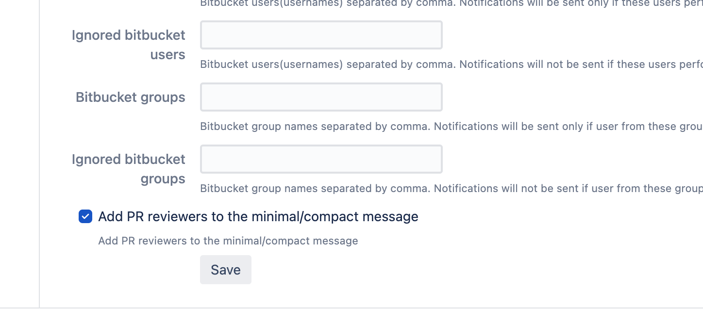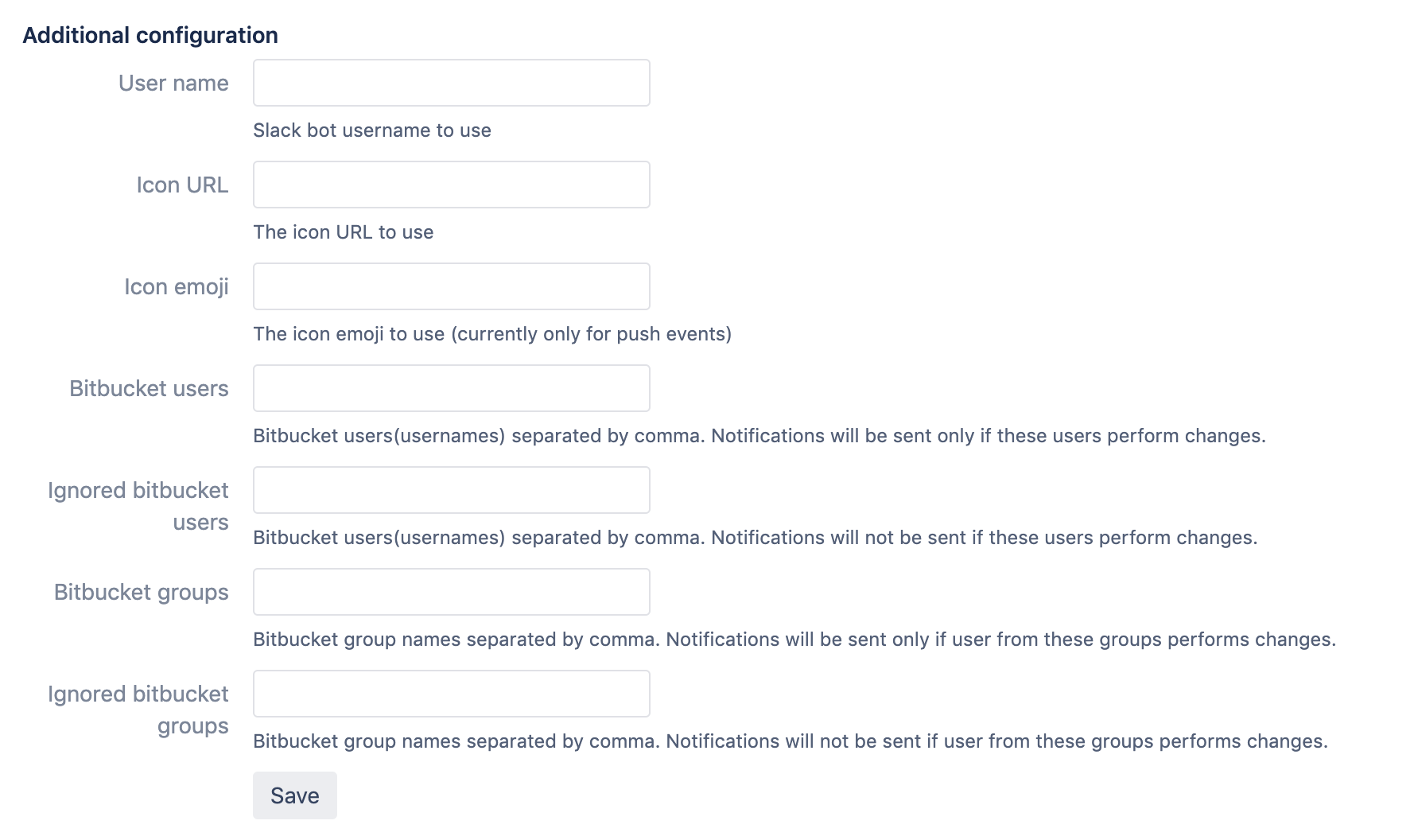 Repository configuration for Slack notifications for Bitbucket