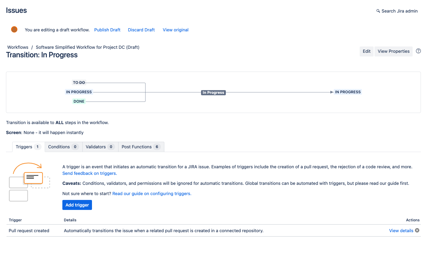 When you get Azure DevOps integrated with Jira you can also set up Jira automations based on the pull requests, builds and deployments.